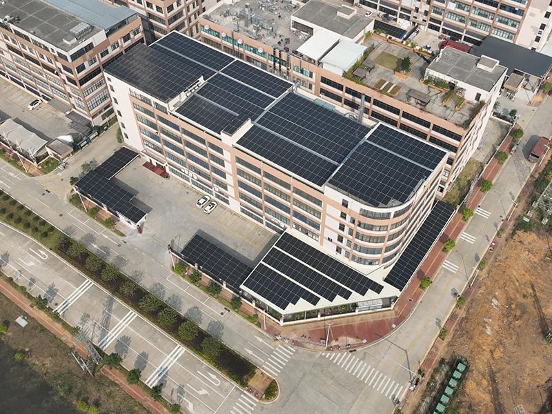 项目创新采用“屋顶阵列+地面光伏车棚”的综合布局,共铺设971块高效组件。光伏车棚巧妙融合发电、停车、遮阳与防水功能,在释放绿色电力的同时,极大地优化了厂区空间利用率。